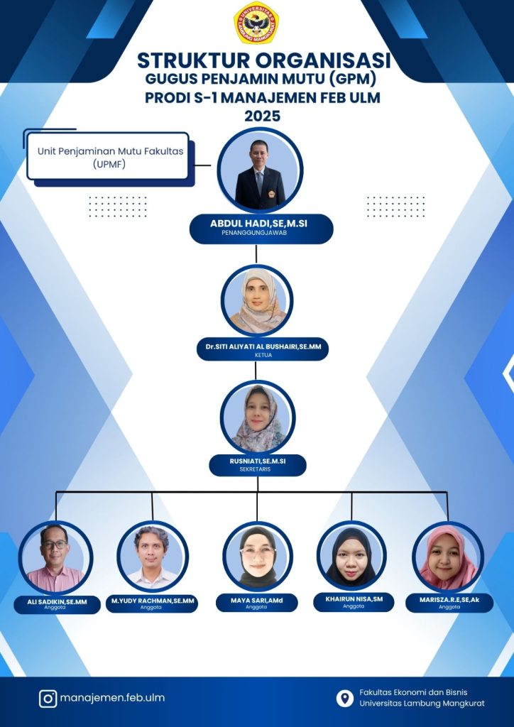 PS Manajemen FEB ULM memiliki Tim Gugus Penjamin Mutu yang dibentuk setiap tahun.